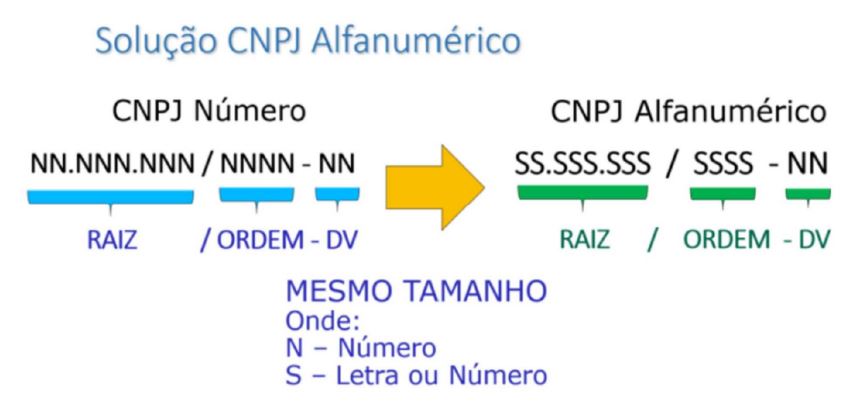 Exemplo Prático: Um CNPJ que antes era 12.345.678/0001-95 poderá aparecer futuramente como A1.B2C.3D4/E5F6-78.